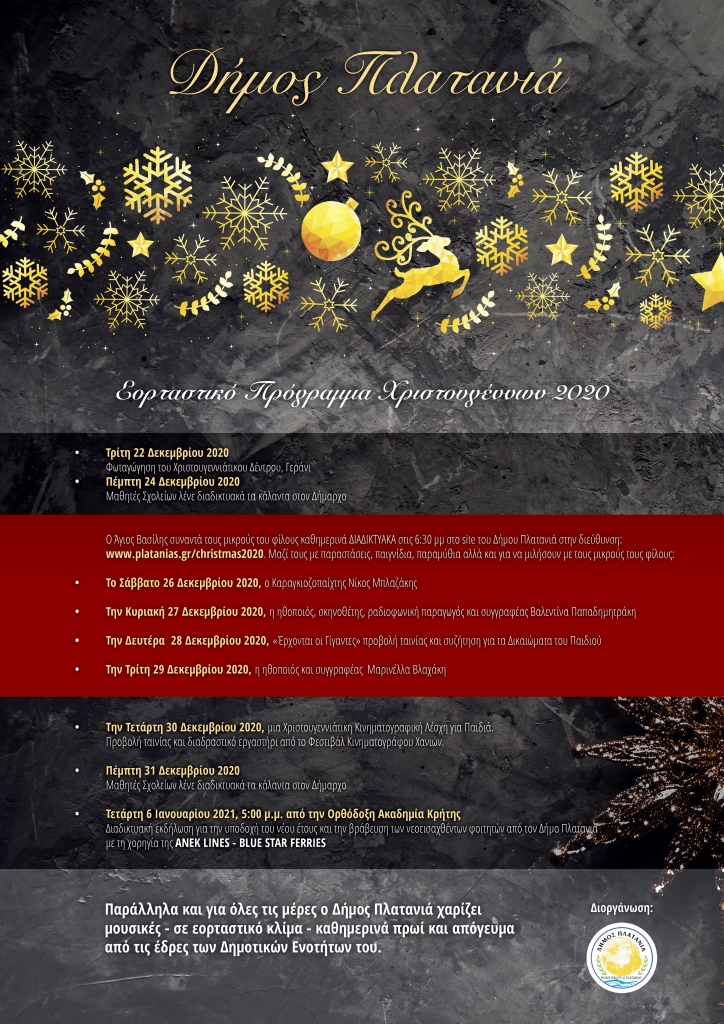 Εορταστικό Διαδικτυακό Πρόγραμμα, Χριστούγεννα 2020, του Δήμου Πλατανιά