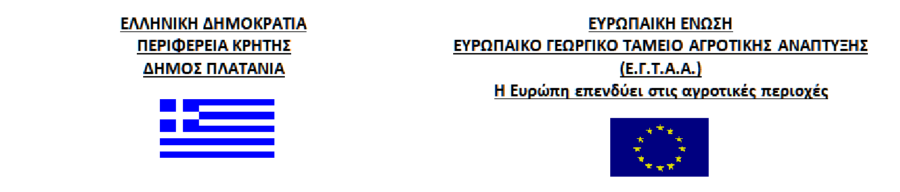 Το έργο χρηματοδοτείται από το ΠΡΟΓΡΑΜΜΑ ΑΓΡΟΤΙΚΗΣ ΑΝΑΠΤΥΞΗΣ (ΠΑΑ) 2014-2020 προσέγγιση CLLD LEADER” με την συγχρηματοδότηση του Ευρωπαϊκού Γεωργικού Ταμείου Αγροτικής Ανάπτυξης (ΕΓΤΑΑ) με κωδικό ΟΠΣΑΑ 0010962640 και πιστώσεις που προέρχονται από τη ΣΑ 082/1 του Προγράμματος Δημοσίων Επενδύσεων (ΠΔΕ). Ο Κωδικός ΣΑΕ του έργου είναι 2017ΣΕ08210000. Είναι εγγεγραμμένο στο Τεχνικό Πρόγραμμα και στον προϋπολογισμό του 2020 του Δήμου Πλατανιά σε βάρος του Κ.Α 64.7336.004. Προκαταβολή δύναται να χορηγηθεί.