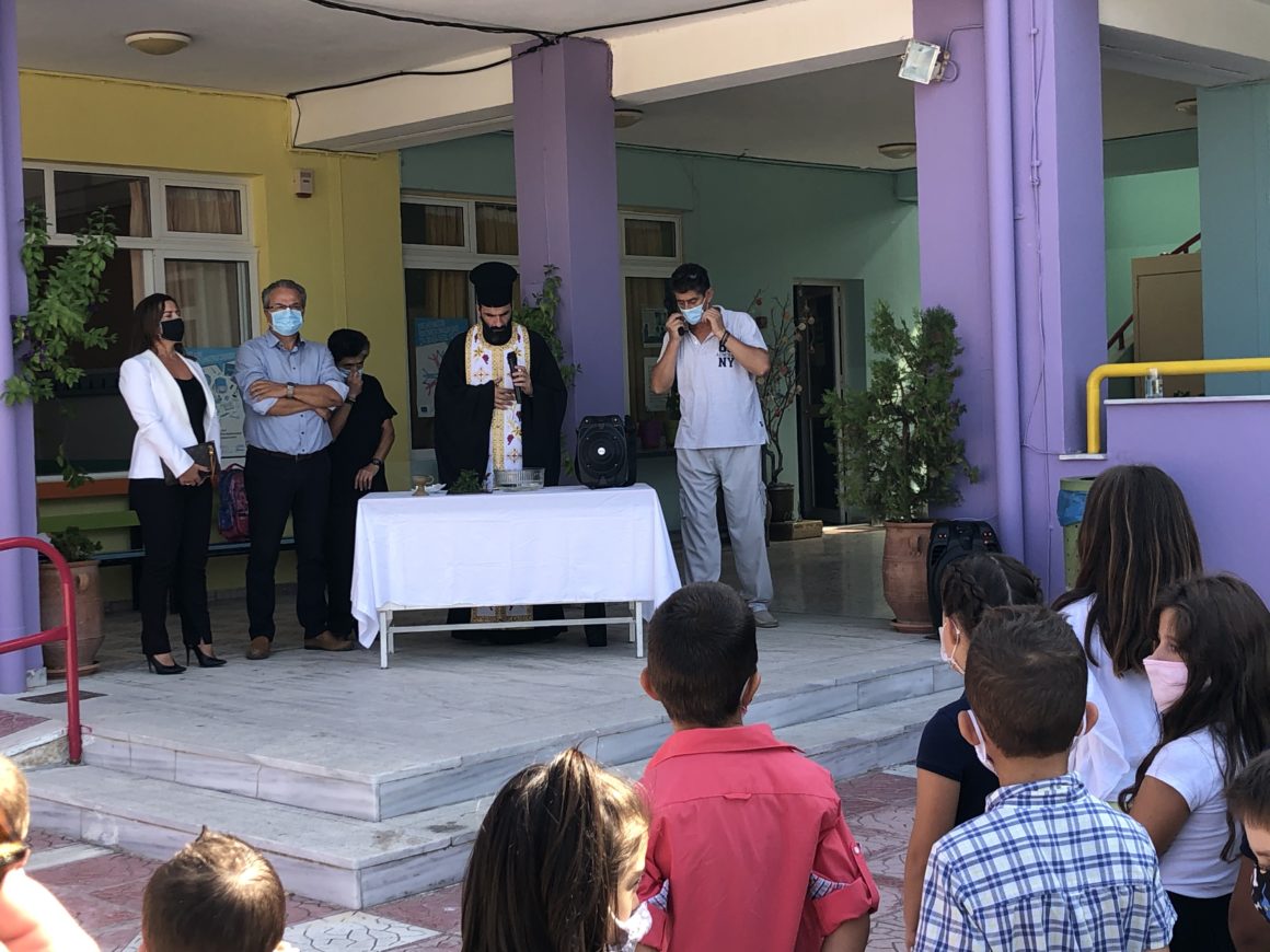 Πραγματοποιήθηκε ο καθιερωμένος Αγιασμός στις σχολικές μονάδες του Δήμου Πλατανιά. Στον Αγιασμό παρευρέθηκε ο Υφυπουργός παιδείας Κος Διγαλάκης Βασίλης, ο οποίος στο χαιρετισμό του ανέφερε, την ιδιαιτερότητα λόγω της πανδημίας που ισχύει για τη φετινή σχολική περίοδο. Ζήτησε την κατανόηση του συνόλου της εκπαιδευτικής κοινότητας και των γονέων, για τη τήρηση των υγειονομικών πρωτοκόλλων, ώστε να προστατέψουμε όσο το δυνατόν περισσότερο τη Δημόσια Υγεία. Ανάλογες αναφορές έκανε στους μαθητές, στην περιήγηση του στις αίθουσες του Γυμνασίου-Λυκείου Βουκολιων. Ο Δήμαρχος Πλατανιά Κος Μαλανδράκης Ιωάννης, στους χαιρετισμούς του στις σχολικές μονάδες που επισκέφτηκε, αναφέρθηκε ότι όλοι βιώνουμε μία απρόβλεπτη κατάσταση, στη διαχείριση της οποίας συμμετέχει και ο Δήμος μας ενεργά, στα μέτρα πρόληψης και προστασίας για τη μη διάδοση του Κορωνοιόυ. Συμπλήρωσε ότι καλούμαστε να τηρούμε τις οδηγίες του αρμόδιου φορέα του ΕΟΔΥ και να λαμβάνουμε όλα τα μέτρα τα οποία υποδεικνύονται,από τους αρμόδιους και Εντεταλμένους φορείς. Στις τελετές του αγιασμού παραβρέθηκαν οι Αντιδήμαρχοι Καλαιτζάκης Γεώργιος, Μαλακωνάκης Ιωάννης, Σολιδάκης Μανώλης και Σταματάκης Ιωάννης. Επίσης παρευρέθηκαν ο πρόεδρος του Δ.Σ Κος Φραγκονικολάκης Αντώνης, καθώς και οι Εντεταλμένοι Σύμβουλοι Δαράκης Ιωάννης, Μαραγκουδάκη Χρυσάνθη, Μαρινάκης Πέτρος, Δημητρογιαννάκης Στέλιος, Αρχοντάκης Χρήστος, Λουπάκη Ασπασία και οι Σύμβουλοι της Λαϊκής συσπείρωσης Ανθούσης Δημήτρης και Μαριανάκης Στέλιος.