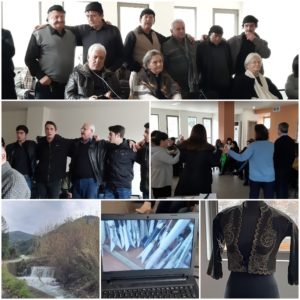 Από την εκπαιδευτική επίσκεψη στο χωριό Μεσκλά ένα από τα πιο γραφικά για φυσιολάτρεις χωριά του Δήμου Πλατανιά, χωριό πέρασμα-στάθμό στα ορεινά του Δήμου. Οι ριζίτικες παρέες Καλλιθέας Βουκολιών και Μεσκλών ανταμώνουν, το κρητικό μαχαίρι ακονίζεται και παίρνει θέση στην παραδοσιακή κρητική φορεσιά. Παράλληλα ο μαχαιροποιός (Χρήστος Μπονάτος) πλάι στην γυναίκα «τερζή» (Ελένη Φασαράκη), ενώ ο αρχαιολόγος συναντά τον αγιογράφο με αφορμή των ιερό Ναό. Στη φωτογραφία κυρίες του ΔΣ του Λυκείου Ελληνίδων Χανίων με τον Πρόεδρο του Νομικού Προσώπου του Δήμου Πλατανιά κ. Πολυχρόνη Σημαντηράκη απολαμβάνοντας το χορό αλλά και το έργο: «Επαγγέλματα που τείνουν να χαθούν όμως δεν χάνονται»